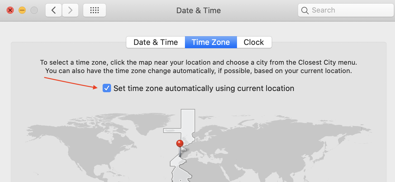 Open the Date & Time Preferences and check the the 'set time zone automatically using current location' box