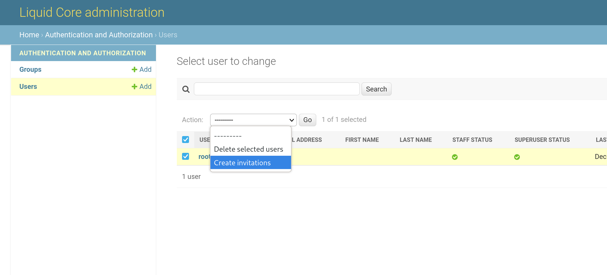 - On Action dropdown menu, select 'Create invitations' and click Go.