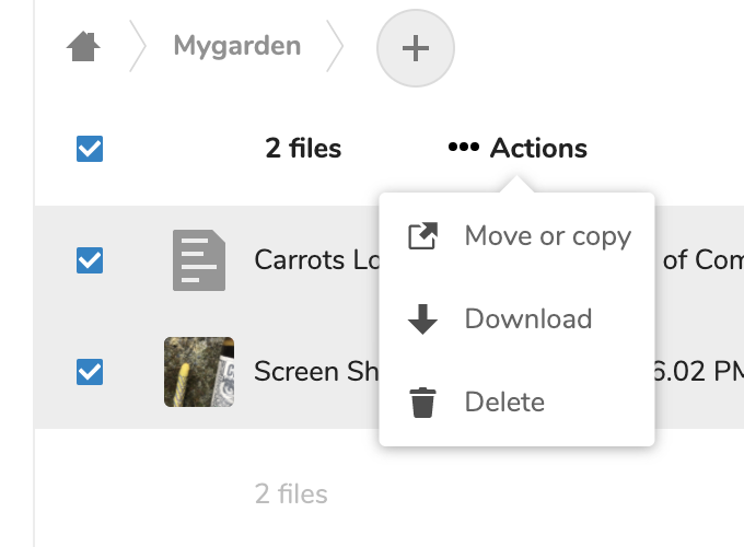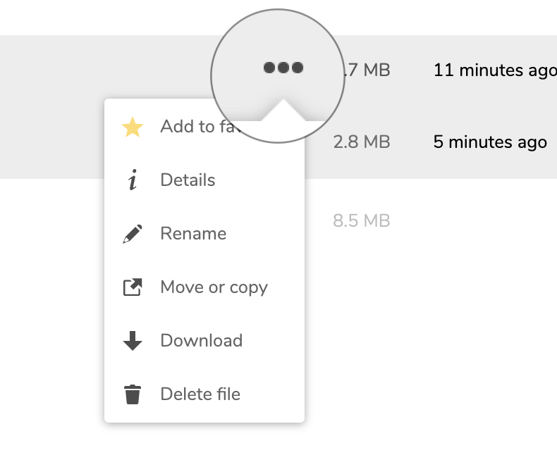 Clicking on the 3dots icon next to a file, will open new actions and options (details is for a shortcut url to share with others)